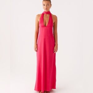 Peppermayo Alicia Satin Halter Maxi Dress - Fuchsia - US 6