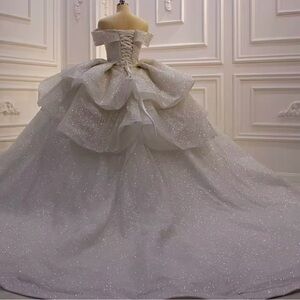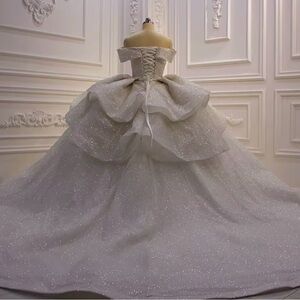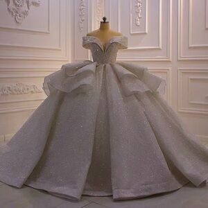 This enchanting sparkling white dress is perfect for special occasions. The shimmering fabric adds a touch of magic to any event.