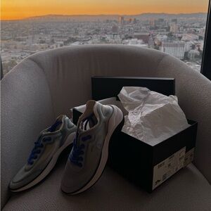 CHANEL White Blue Mesh Sneakers Lace Up Low Top Logo