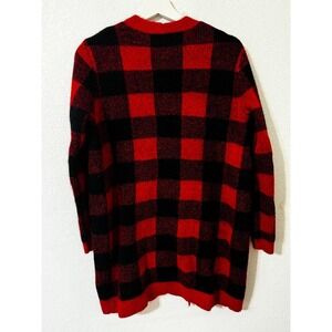 Old Navy Red Black Buffalo Plaid Open Front Long Sleeve Cardigan Sweater Medium