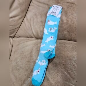 NWT Sock It To Me Knee High Light Blue Baby Seal Socks