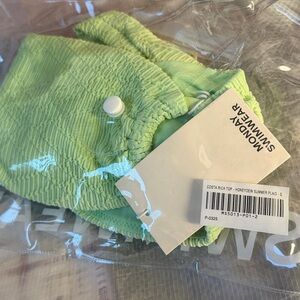 NWT Monday Swimwear Costa Rica Bandeau Top in Honeydew Summer Plaid - Size Small