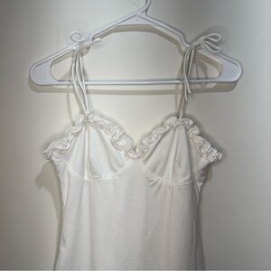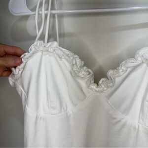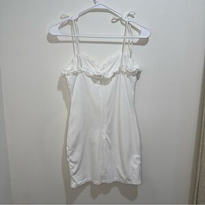 superdown dress, camile tie strap dress, white mini dress, tie strap dress, ruffle bust dress, bodycon mini dress, summer mini dress, going out dress, vacation dress, Revolve