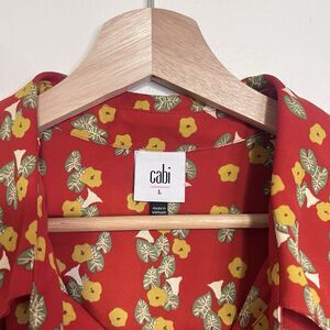 Cabi Belfry Floral Popover Blouse #3947 Size L Coral Red Long Sleeve
