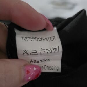 Stylish black pants featuring a bold red and green stripe. Accented with decorative buttons.
