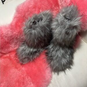 Stylish gray faux fur boots. Perfect for adding a touch of luxury to your outfit. Fits size 7/8