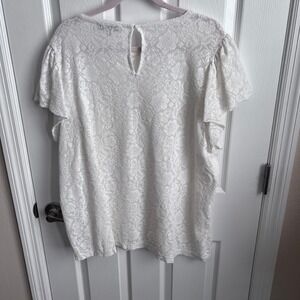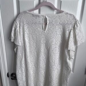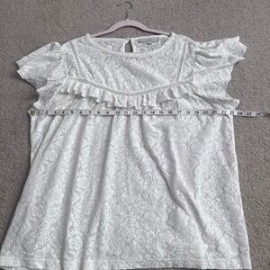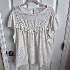 LOFT Lace Ruffle Flutter Sleeve Top Ivory Women's XXL