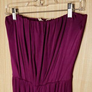Rachel Rachel Roy strapless silky midi dress. Center wrap look from waistline to hem. Lined with black fabric. There are a few light stains on skirt (see picture). Measurements are 14" from armpit to armpit, 33" from armpit to hem, and 10" from top to waistband.