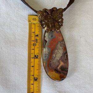 Stephen Dweck Boulder Opal Brown Leather and Bronze Butterfly Pendant Necklace