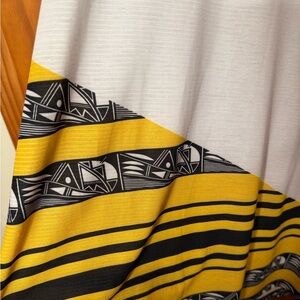 Stylish long sleeve shirt featuring a white and black design with yellow accents. Unique patterns add a distinctive touch.