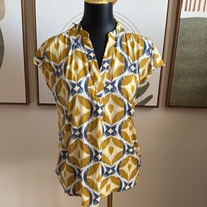 3/$10 RACHEL Rachel Roy Yellow Blue Geometric Blouse with Mandarin Collar