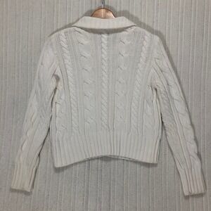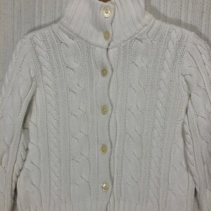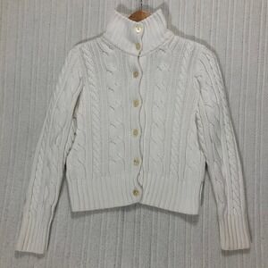 Lauren Ralph Lauren White Cable Knit Turtleneck Button Front Cardigan Sweater M