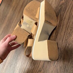 These say 36 which would be 6 but idk seem more like 6.5 or 7 These chic tan sandals offer comfort and style for your child. Featuring a secure buckle, they are perfect for everyday wear.