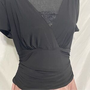 Shimmer pink color and black. Top stretches.