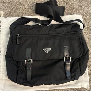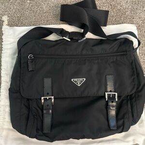 Authentic Prada Tessuto Nylon Messenger Bag in classic black.