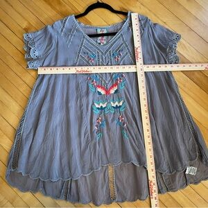 JOHNNY WAS Vara Blouse Top Cupra Rayon Embroidered Cut Out Ladder Lace Boho