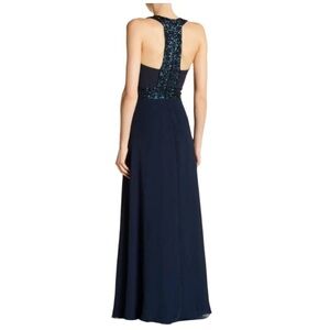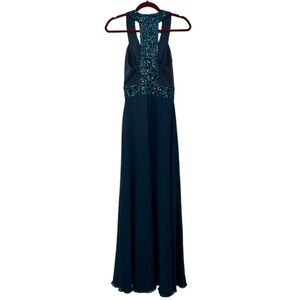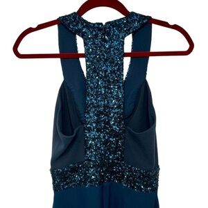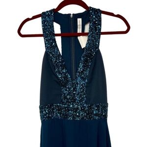Dress The Population Delani Blue Sequin Trim Gown Maxi Cocktail Dress Women XS