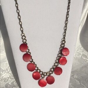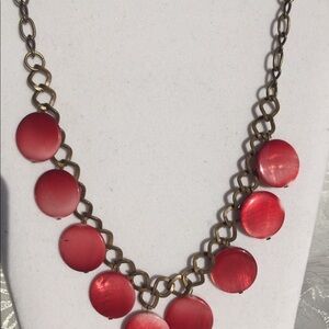 Handmade Brass and Dark Pink Shell beads necklace.