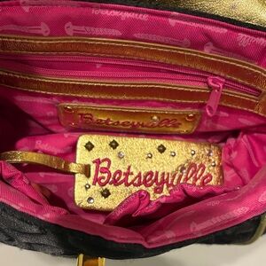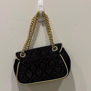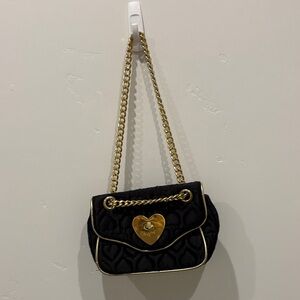 Betsey Johnson Black Quilted Heart Bag with Gold Chain