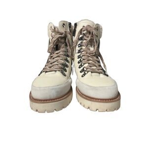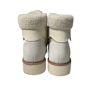 Blondo Natasia Waterproof Ankle Boots Women Beige Leather Suede Sherpa