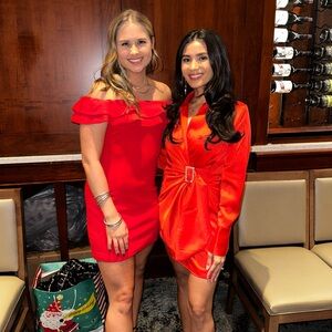 HOUSE OF HARLOW Front Rhinestone Buckle Satin Wrap 35" Mini Dress in Red Size XS