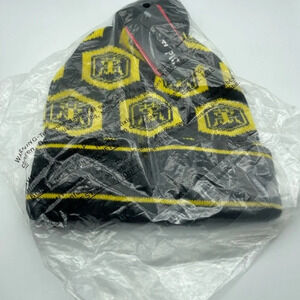 Just add soy sauce. This black pom beanie features the Kikkoman logo all over in yellow and embroidered on the cuff.
