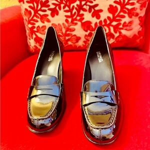 Michael Kors Black Patent Leather Loafers with Heels.