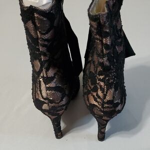 Joyfolie NWOT Black and Tan Lace Heeled Velvet Bow Candence Boots Sz 8 *flaw