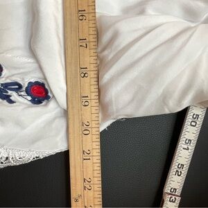 Vintage Top Embroidered Floral Lace Cream White Blue Red Boho 70s Size Medium