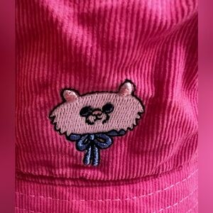 Lazy Oaf Pink Cord Bucket Hat with Kitty embroidery