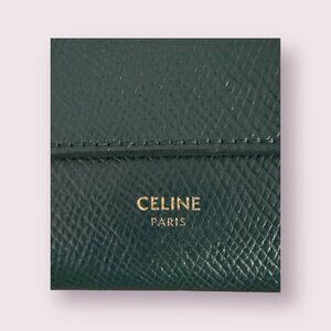 This is an authentic CELINE Small Tri-Fold Wallet crafted in beautifully textured grained calfskin leather in a rich green tone. The design is sleek, structured, and timeless, reflecting CELINE’s understated luxury aesthetic.