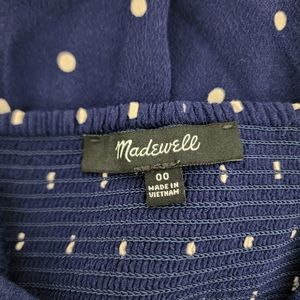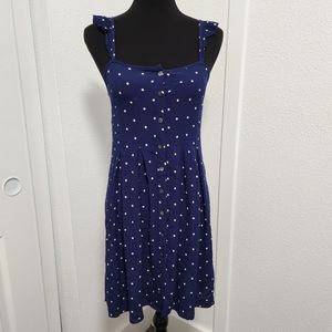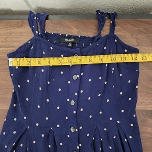 Madewell Ruffle Strap Button Front Navy Polka Dot Mini Dress