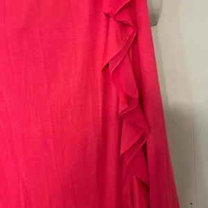 Pink wrap pencil lined high low ruffled skirt length 40”