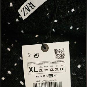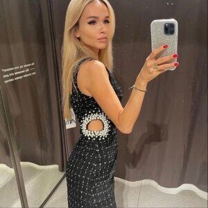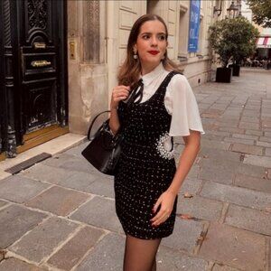 Zara Textured Tweed Dress Sleeveless with faux pearl Black XL NWT