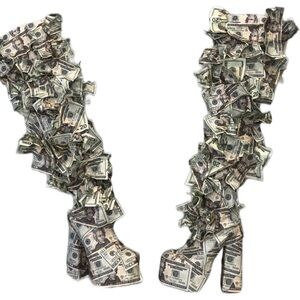 Stand out with these eye-catching platform boots designed with a money theme. Perfect for making a bold fashion statement.