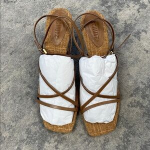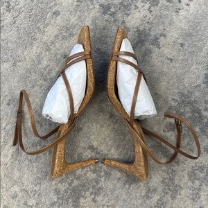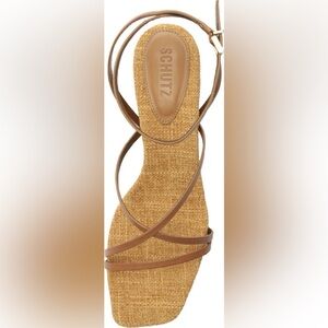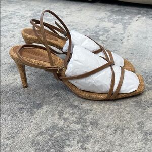 NIB Schutz Bari Ankle Strap Sandal Heels Brown Tan Sz 11