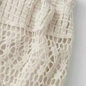 Elevate your style with this Boho-inspired beige crochet flowy skirt, featuring an A-line silhouette and long length for a comfortable, effortless look. The natural mid-waist design and regular fit ensure a flattering fit.