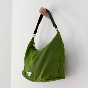 The ultimate Y2K "it" bag in the season's most coveted shade. This vintage Prada hobo features the iconic Tessuto nylon and triangular logo plate, offering that perfect pop of brat green to elevate any neutral outfit. A true minimalist staple from the early 2000s that feels more relevant than ever. Details: • Brand: Prada • Style: Vintage Shoulder Bag / Mini Hobo (Early 2000s) • Material: Tessuto Nylon with Saffiano Leather Trim • Color: Bright Olive Green / Apple Green with Silver-Tone Hardware • Condition: Very Good Vintage. Signs of wear consistent with age; please review photos of nylon and hardware. Minor mark on bottom right pictured. Measurements (Approximate): • Height: 6.75" • Width: 10.25" • Depth: 4.25" • Handle Drop: 5.5" Style Note: Lean into the 90s nostalgia by pairing this with a baby tee, baggy cargo pants, and sleek sunglasses for an effortless off-duty model look. The Fine Print: This is a pre-loved item. Signs of age and wear may be present; please review photos carefully. • Top Rated Seller: Buy with confidence (250+ 5-star reviews). • Fast Shipping: Ships from a smoke-free studio in Central Toronto. Authentication and discounted shipping is included by Poshmark on purchases over $700. Keywords: Prada, Vintage, Y2K, Tessuto, Nylon, Lime Green, Brat, Shoulder Bag, 90s, Minimalist, Silver Hardware, Mini Bag, Rare