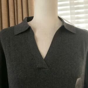 NWT Uniqlo Washable Ribbed Knit Polo Sweater in Gray