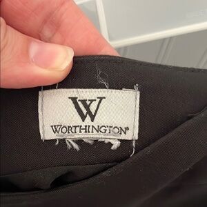This knee-length pencil skirt by Worthington is crafted in a sleek black fabric, adorned with silver grommet embellishments for a modern touch. Its structured design ensures a flattering fit, making it ideal for both work and cocktail occasions. The minimalist style is elevated by the metallic accents, offering a sophisticated yet edgy look.