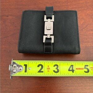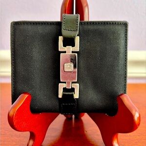 Vintage Gucci Jackie Wallet/Black Canvas Leather Bifold/Piston Lock