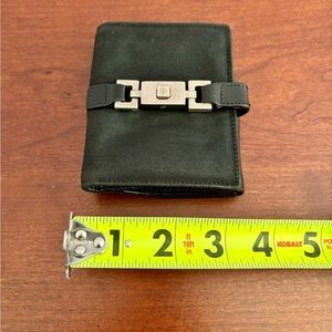 Add a timeless touch of luxury to your accessories with this authentic vintage Gucci Jackie compact wallet. A true classic, this designer piece features iconic black canvas with smooth black leather trim and the signature Gucci piston lock closure, a hallmark of the Jackie collection.