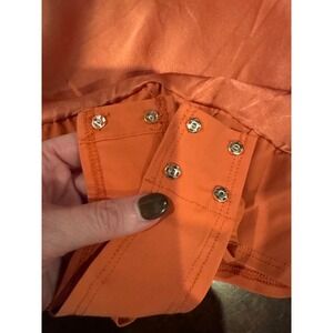 INTERMIX Elsie Silk Cowl Neck Bodysuit Copper Coral Spaghetti Strap Size L. This luxurious bodysuit features a flattering cowl neckline and adjustable spaghetti straps for a perfect fit. The silky fabric drapes beautifully, offering a sophisticated look. Designed with a comfortable and secure snap closure at the base for easy wear.
