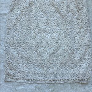 Ann Taylor Lace White Dress • Size 2 • V scallop neckline • Sleeveless • 100% Polyester • Has inner lining • Has zipper closure on one side • Good Used condition - has a small light stain on the back of the dress (see last photo)