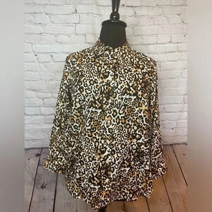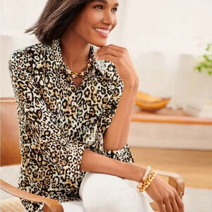 NWT TALBOTS CLASSIC COTTON SHIRT - LEOPARD 1X
