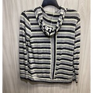 MARKET & SPRUCE Women's (Size S) Long Sleeve Hooded Shirt Striped Pockets