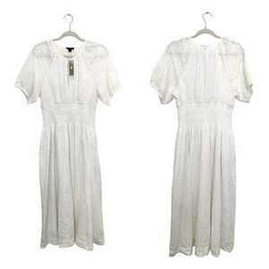 NWT J Crew Provence smocked-waist midi dress in eyelet white