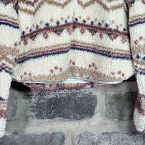Wild Fable Sherpa Fleece Pullover Sweater Fair Isle Pattern Beige XXL Warm Cozy