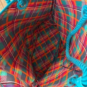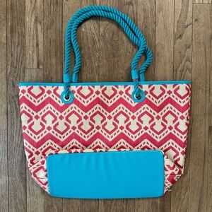 Brighten your day with this charming Vera Bradley tote, a canvas of vibrant summer joy! Imagine yourself strolling along the boardwalk or heading to a picnic, this bag effortlessly carrying your essentials with its spacious interior. The eye-catching geometric pattern in pink and cream is beautifully accented by embroidered slices of juicy orange and ruby red grapefruit, making it a true statement piece. Sturdy rope handles in a striking teal add a touch of nautical flair and provide comfortable carrying, while the playful, patterned lining inside adds an extra pop of color. This tote is more than just an accessory; it's an invitation to embrace the sunny side of life.