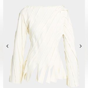 Bottega Veneta fluid stretch top features an asymmetric striped cutaway hem